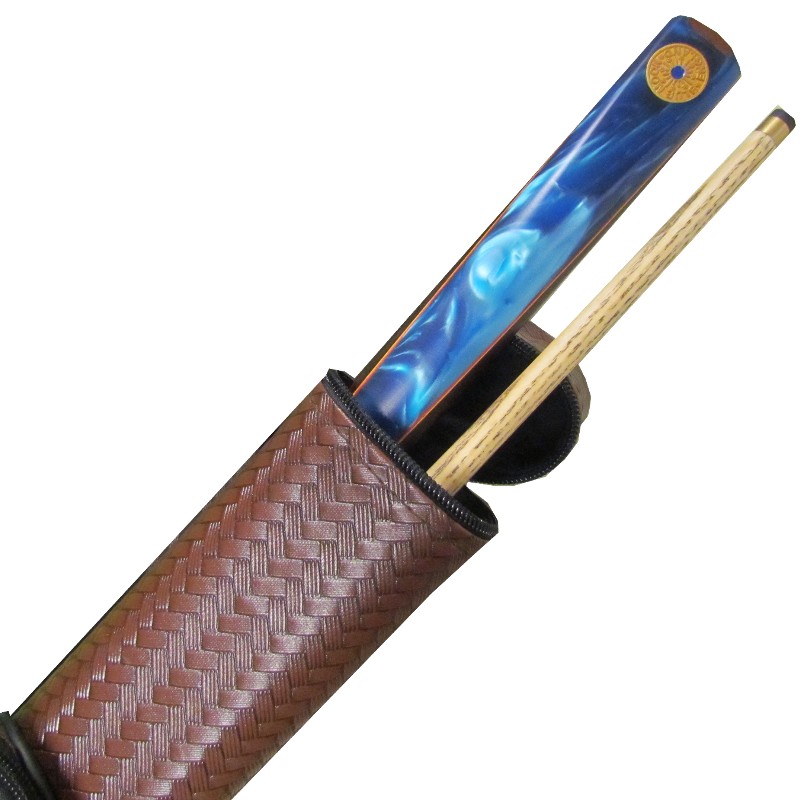 The `Blue Flash` is an inexpensive machine spliced 2pc cue and is fitted with an 8.5mm tip for English 8 ball pool. The cue has a genuine hardwood butt with coloured veneers and an attractive Resin Splice.